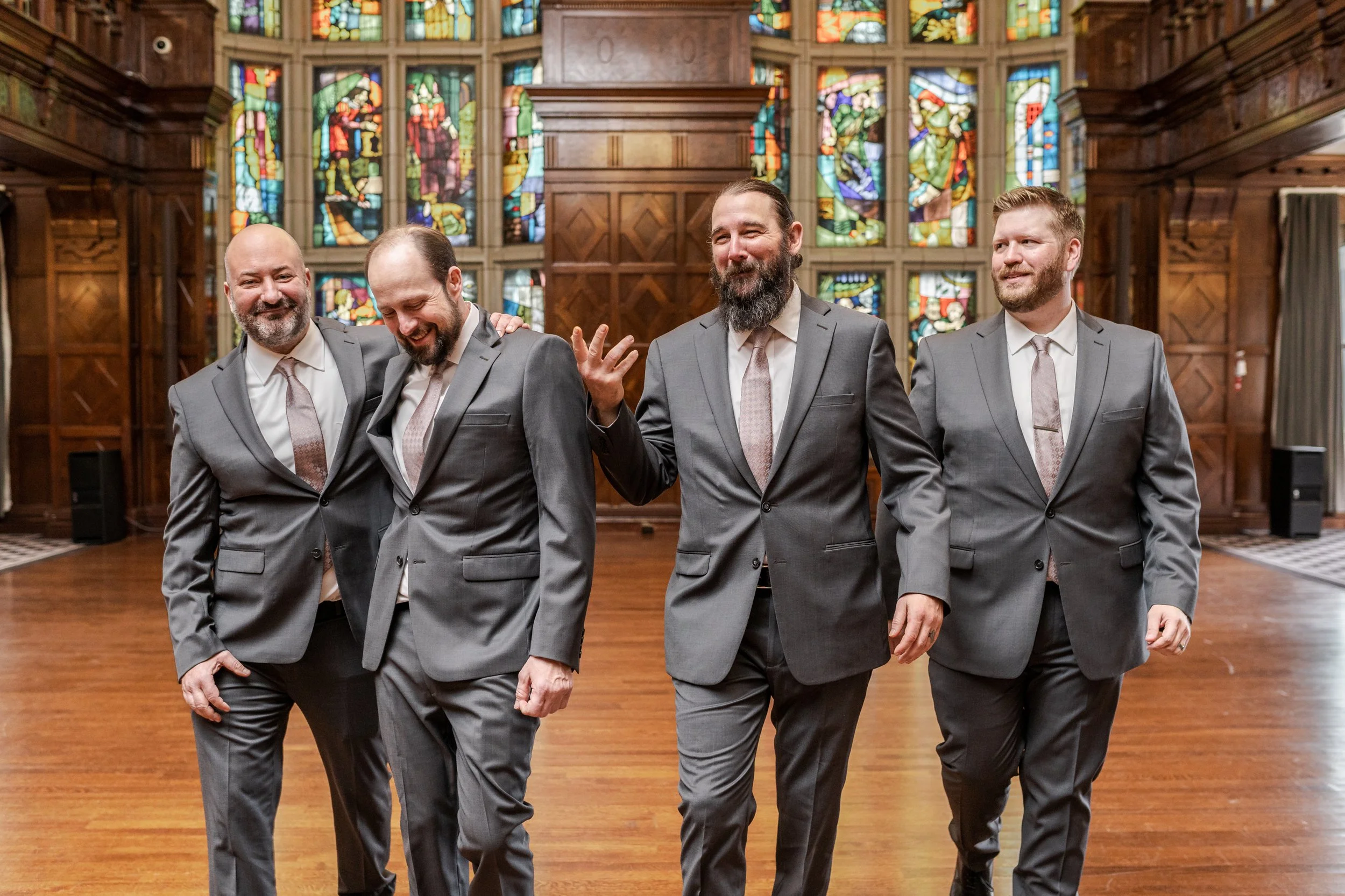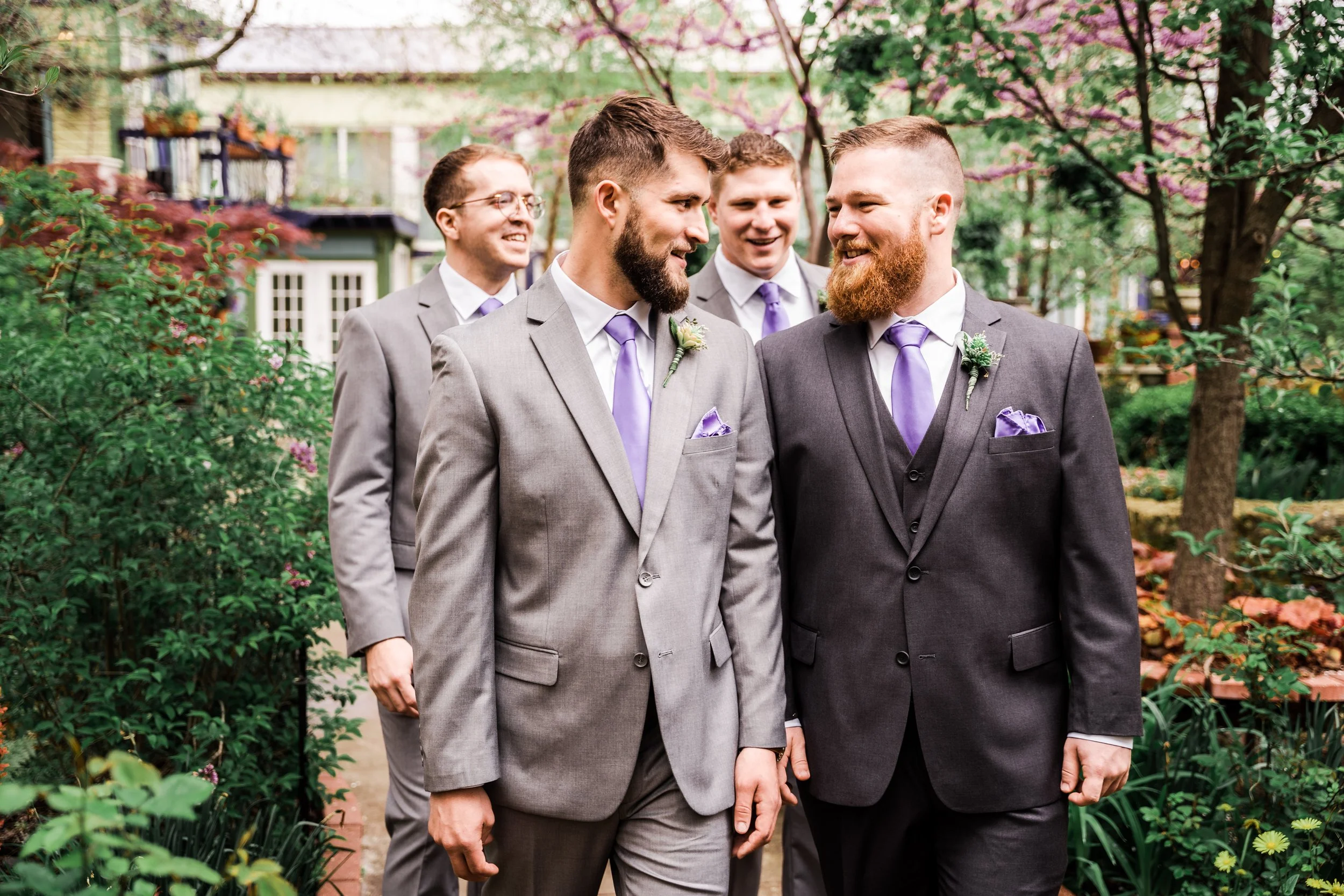Most grooms are not used to being in front of the camera, so we make sure he feels comfortable, confident, and maybe even a little playful. All of this starts with a little practice during enagement pictures when playful moments are easy and liad back.
